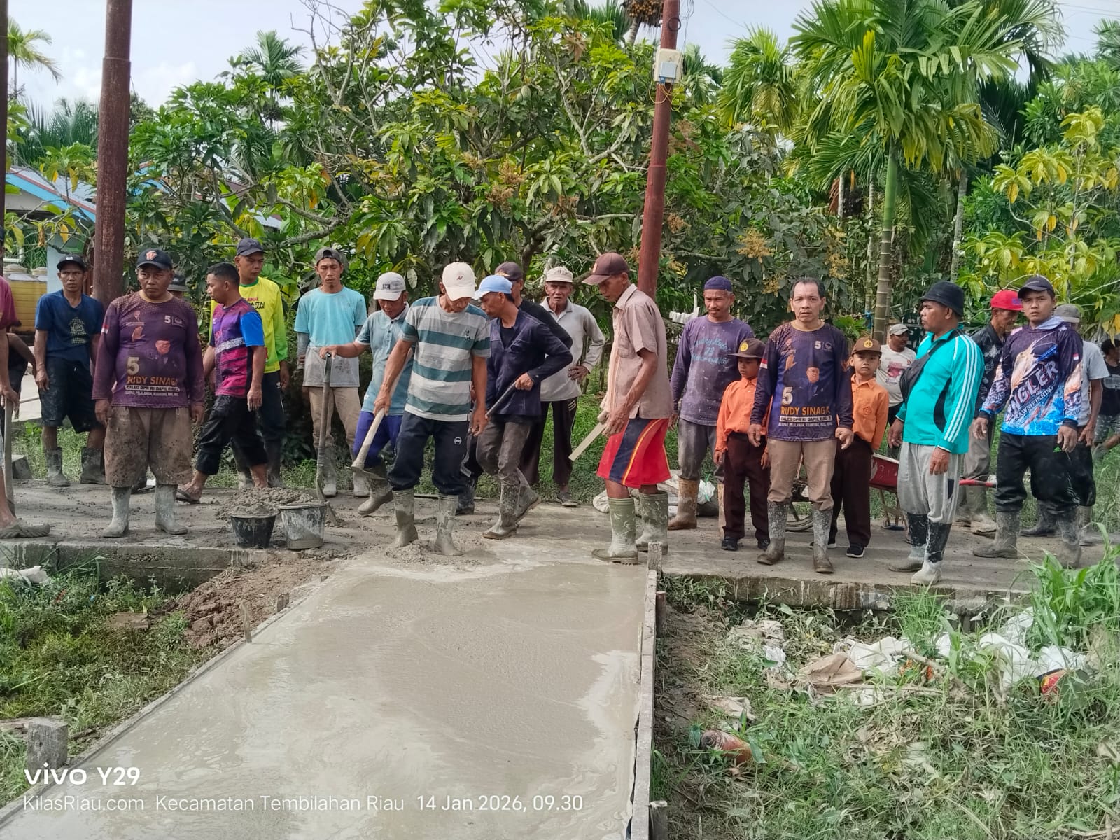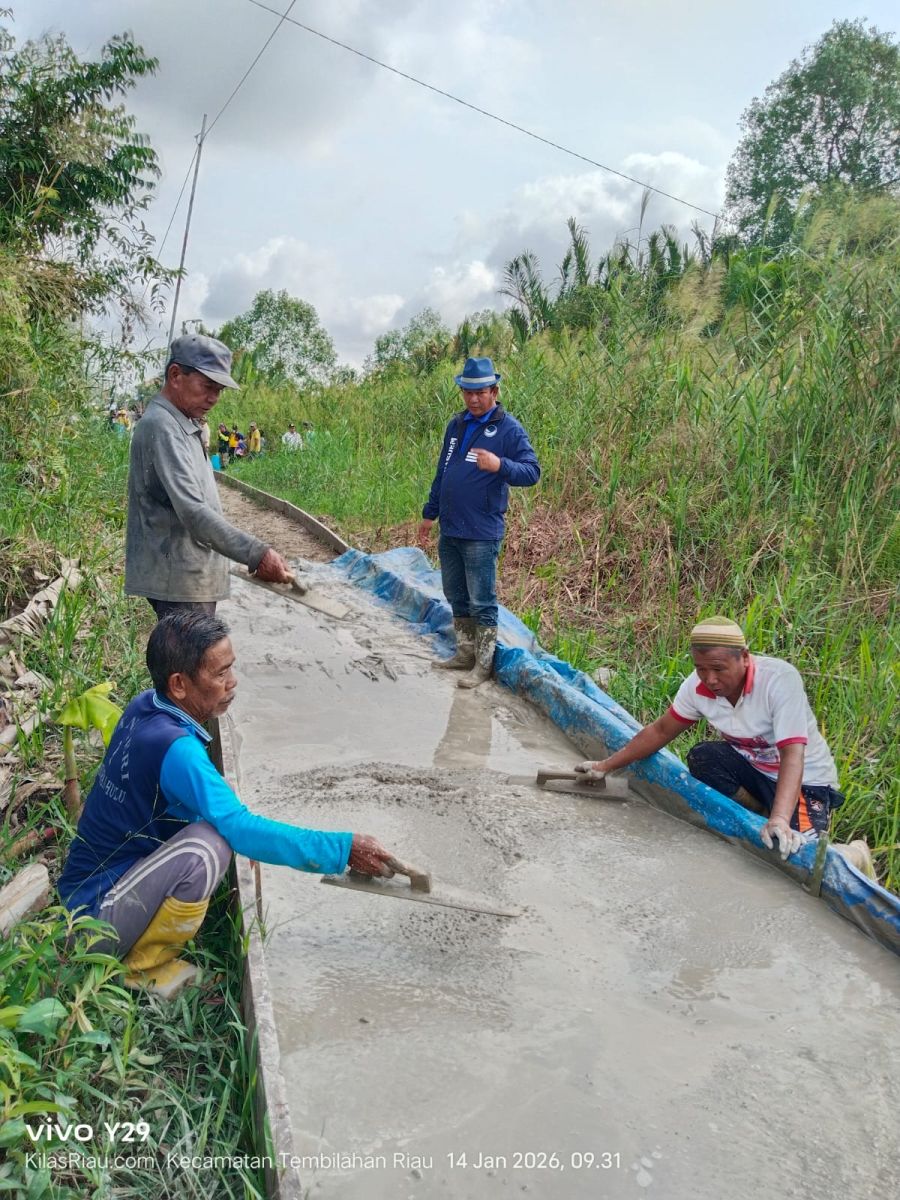 KILASRIAU.com – Warga Emban Sari, Kelurahan Seberang Tembilahan, Kecamatan Tembilahan, Kabupaten Indragiri Hilir (Inhil), melaksanakan pembangunan jalan penghubung menuju Kampung Baru secara swadaya, Rabu (14/1/2026).