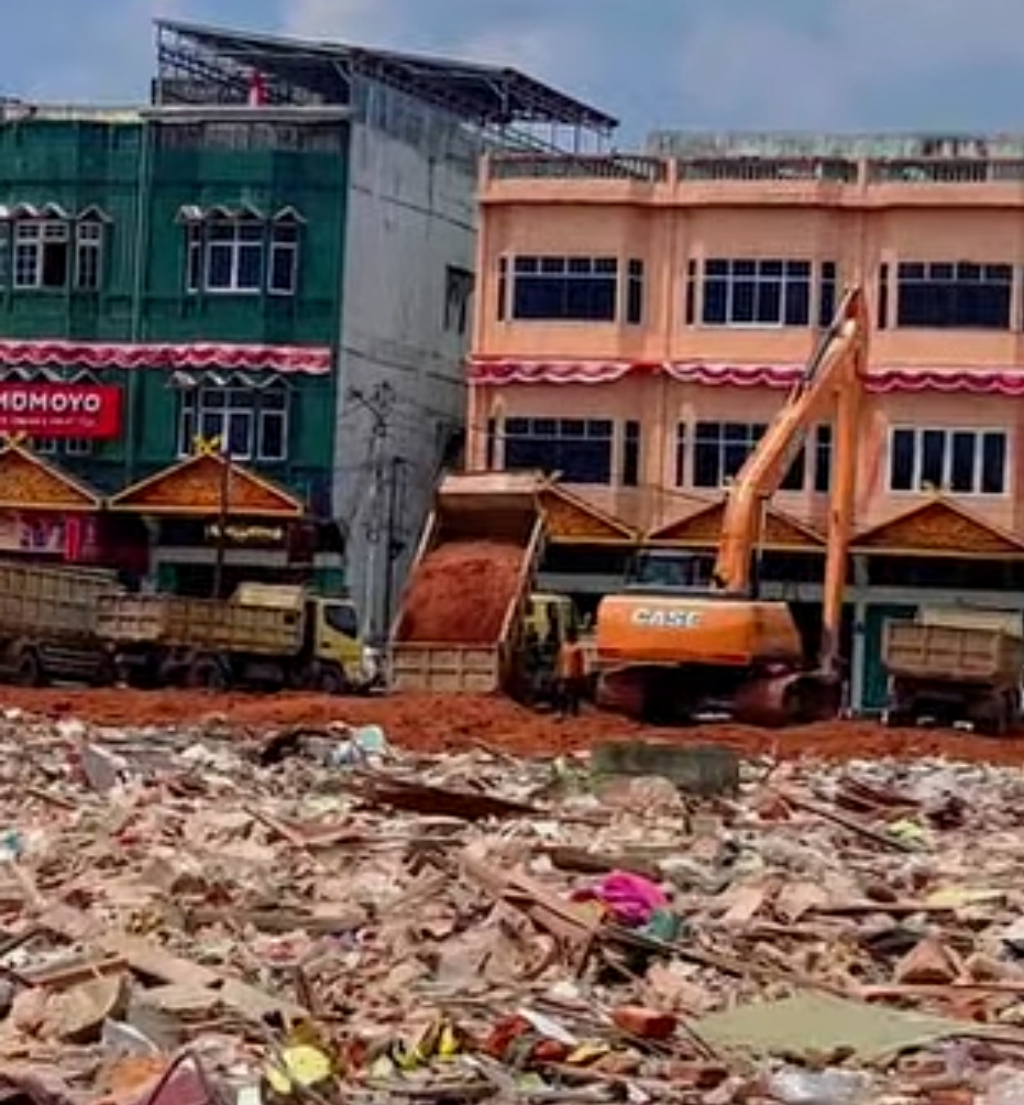 Sehari setelah kios-kios itu dibongkar, tanah pun diturunkan. Tanah merah, tanah basah, ditimbun dan diratakan. Cepat. Nyaris tanpa jeda. Jejak pasar yang semalam masih menyimpan sisa suara tawar-menawar, pagi itu telah tertutup lapisan bumi.