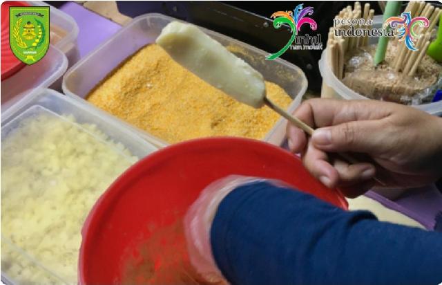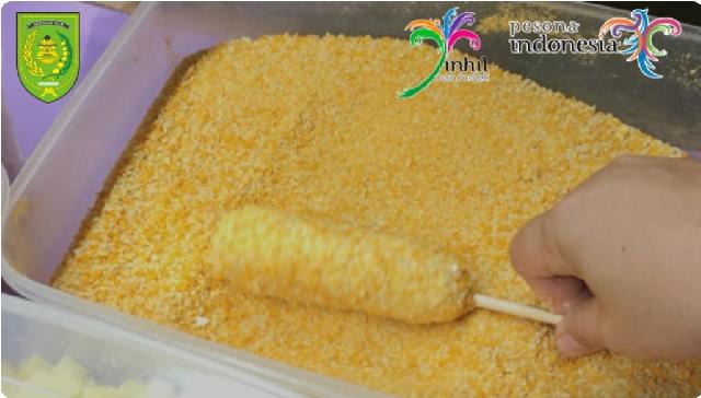 Corndog terbuat dari sosis dan keju yang kemudian dilapisi tepung sehingga menghasilkan rasa gurih dan lezat.