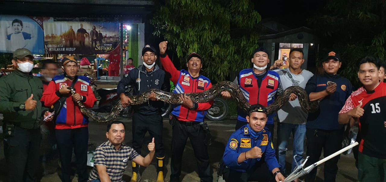 Ular Sanca Ukuran 5 Meter Berhasil Diamankan Tim Reaksi Cepat DPKP Inhil