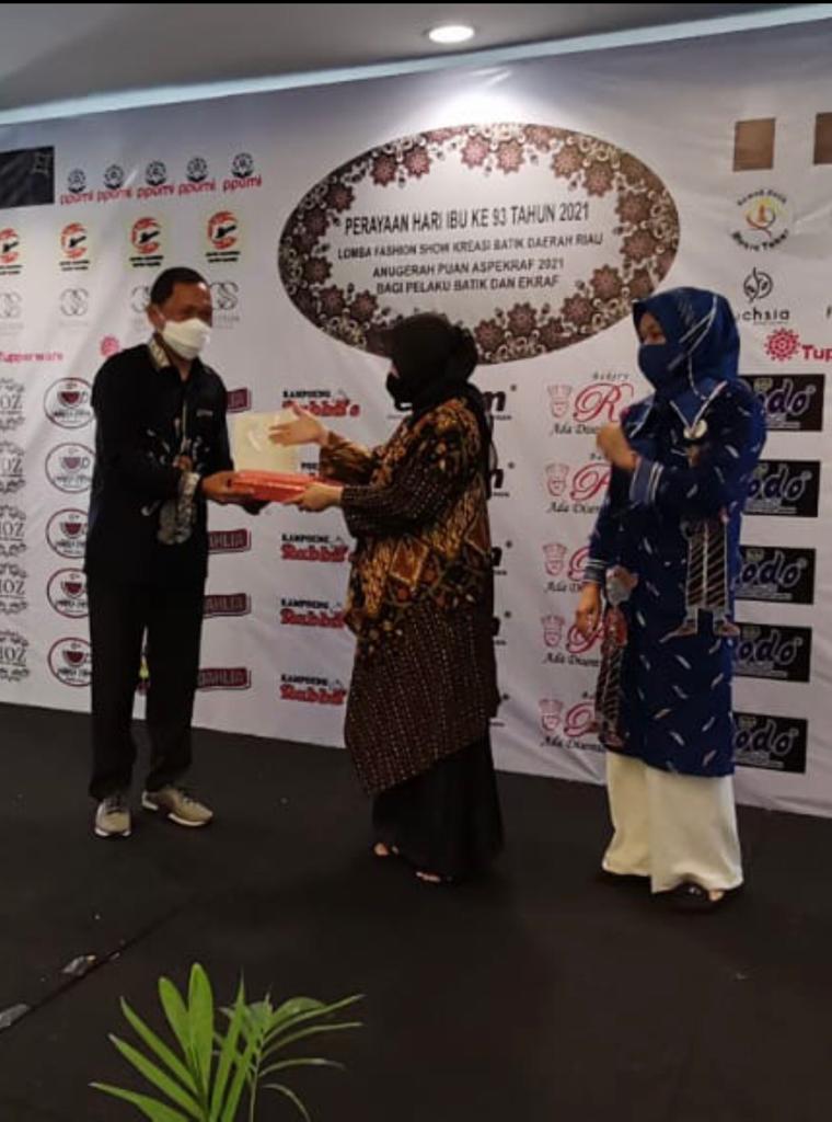 PEKANBARU - Bersempena dengan peringatan hari ibu tahun 2021 yang ditaja oleh Puan Asosiasi Pelaku Usaha Ekonomi Kreatif Fashion (Aspekraf) Provinsi Riau yang diselenggarakan di Hotel Pangeran Pekanbaru, selasa (22/12/21).