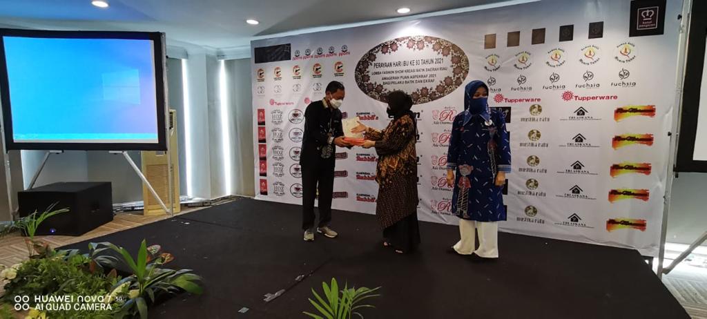 Penghargaan ini diberikan setelah dilakukan penilaian terhadap Organisasi Perangkat Daerah (OPD) yang membidangi Perindustrian se Provinsi Riau, dalam memajukan produksi Batik Riau.