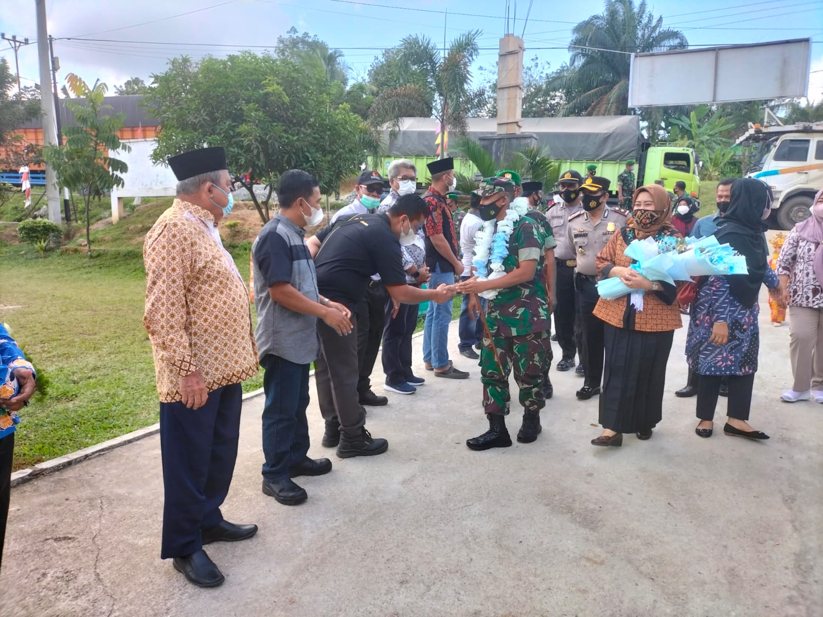 Kedatangan Dandim di Kecamatan Kemuning disambut hangat oleh Danramil 09/Kemuning, seluruh Forkopimcam Kemuning dan Forkopimcam Keritang serta tokoh masyarakat,tokoh adat dan tokoh agama setempat.