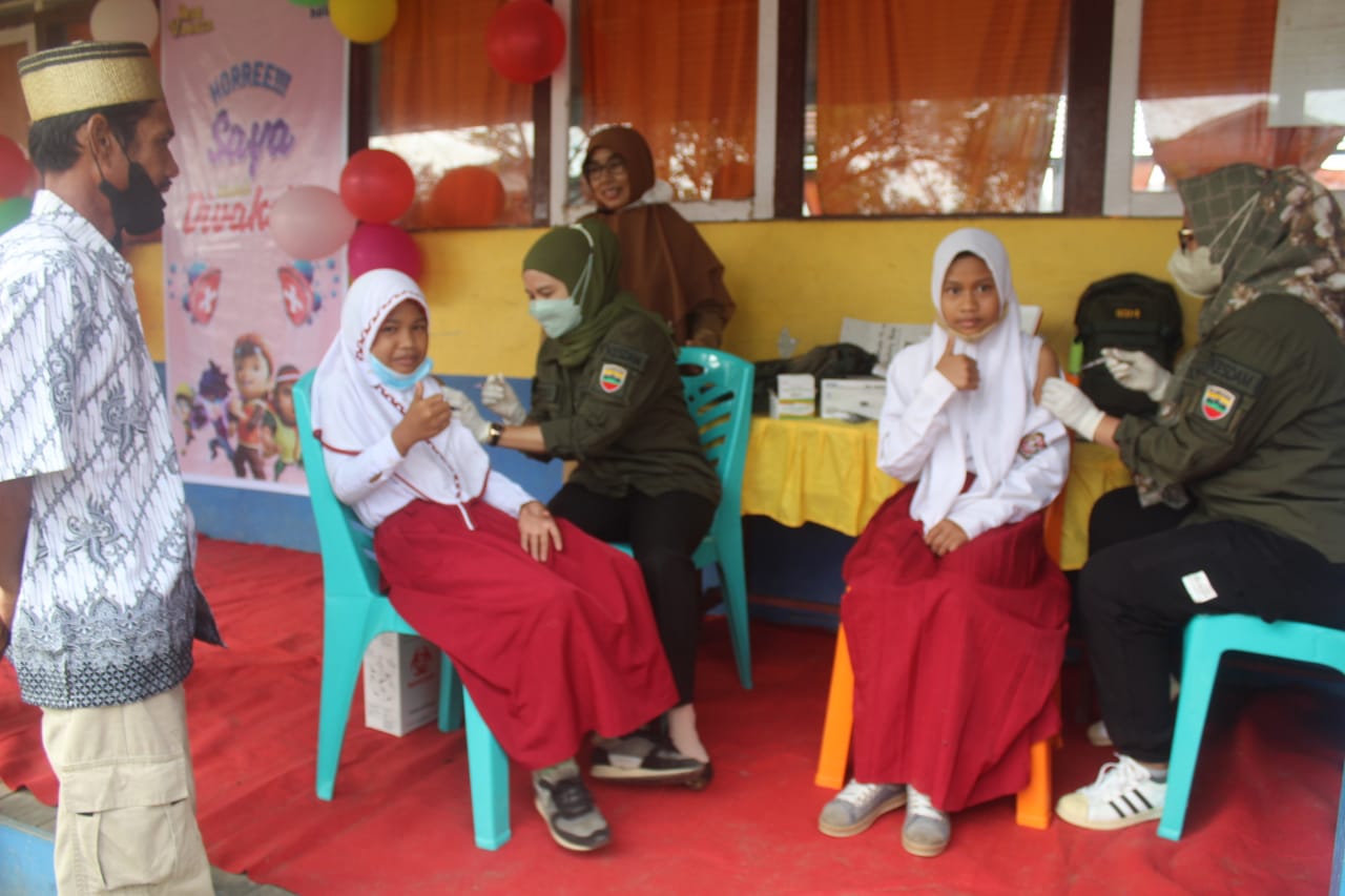 Kodim Inhil Bersama Tim Kesehatan Polkes  Terus Semangat Giatan Vaksinasi di Sekolah Dasar