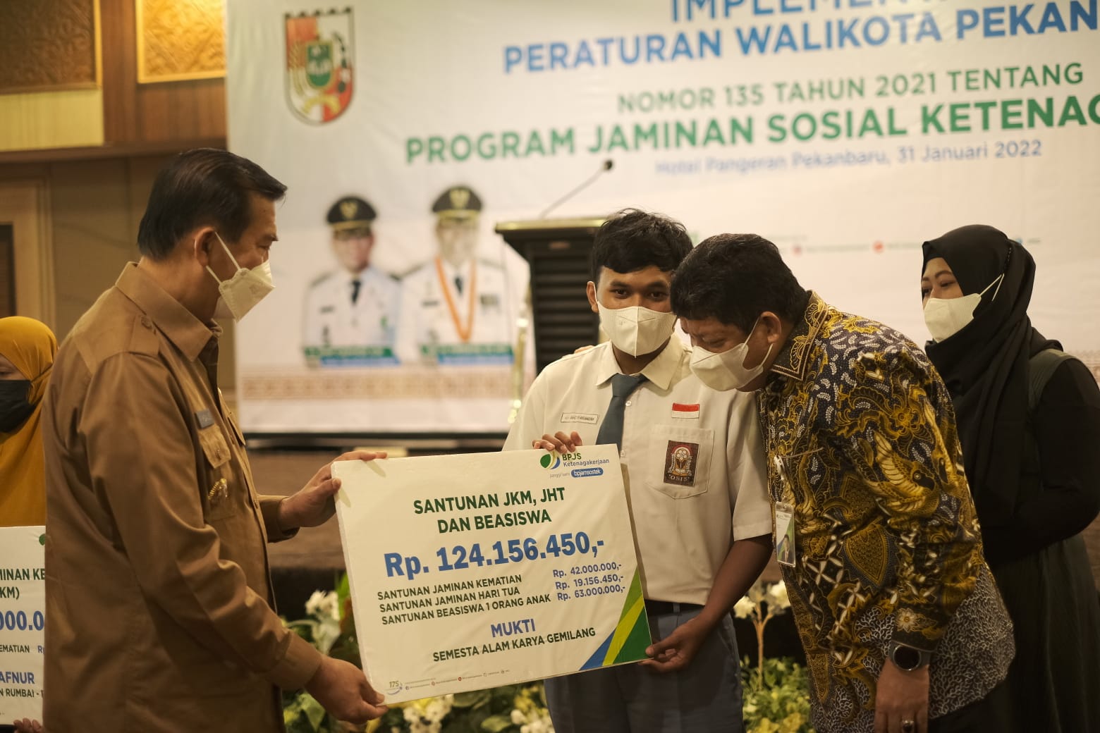 Wali Kota Pekanbaru, Dr Firdaus MT mengatakan program jaminas sosial kerja ini merupakan implementasi dari Perwako Nomor 135/2021 tentang Program Jaminan Sosial Ketenagakerjaan. Pemko Pekanbaru ikut mewujudkan kesejahteraan masyarakat pekerja yang merupakan komitmen pemerintah dalam mewujudkan pembangunan Indonesia ke depan.