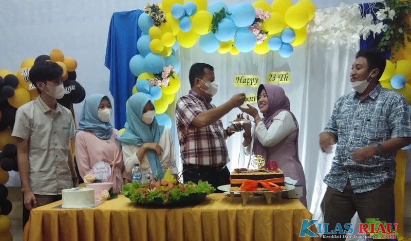 TELUK KUANTAN – Hj. Yulia Suhardiman pada Aniversary pernikahan yang ke-23 mendapatkan ucapan kata cinta dari sang suami Drs. H Suhardiman Amby, Ak.,MM yang tepatnya pada Senin (31/01/2022) malam di Pendopo Rumah Dinas Bupati Kuantan Singingi.