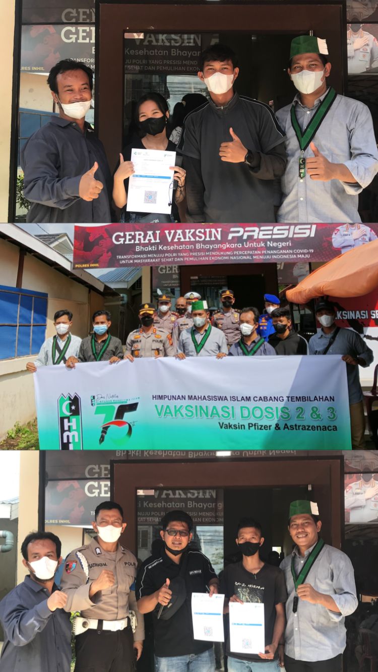 Ketua Umum HMI Cabang Tembilahan Ahmad Fauzi mengatakan, hari ini "kita ikut serta adakan pelaksanaan vaksin dosis 2 dan 3, jenis vaksin Pfizer dan Astrazeneca, Alhamdulillah hampir 100 orang yang mengikuti vaksin.