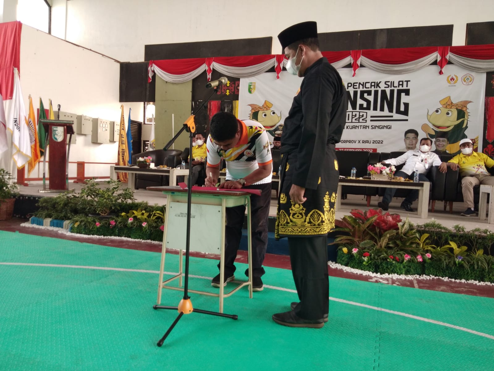 TELUK KUANTAN - Plt Bupati Kuantan Singingi (Kuansing), Drs. H Suhardiman Amby, Ak.,MM resmi membuka Kejuaraan Kabupaten (Kejurkab) Pencak Silat Remaja Piala Bupati perdana yang digelar selama tiga hari ke depan. Dalam hal ini Ikatan Pencak Silat Indonesia (IPSI) Kuansing sebagai penyelenggara, yang bertujuan menggali potensi atlet muda guna mewakili Kuansing dalam Porprov ke-X Riau 2022 mendatang. Pegelaran Kejurkab Bupati Cup I Tahun 2022 ini dimulai pada Jum'at hingga Ahad (25-27 Februari 2022) di Aula SMA Negeri Pintar Kuantan Singingi, Riau.