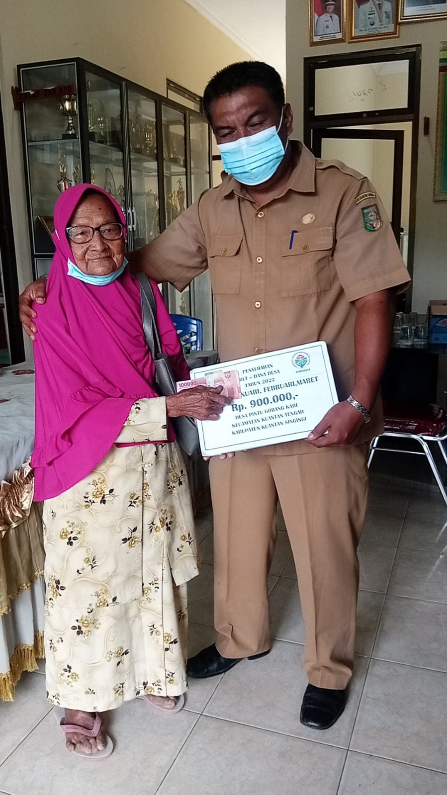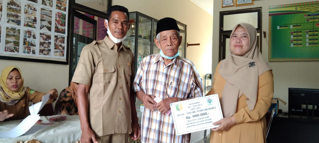 Penjabat Kepala Desa Pintu Gobang Kari, Triwan Marlius didampingi langsung Kasi PMD, Syafrizal, Pendamping Desa, Eko Rinaldo, Babin Kamtib, Edi Muslim, dan segenap perangkat desa dan anggota BPD, dalam giat menyalurkan BLT DD tahap pertama, periode bulan Januari-Maret 2022, pada Selasa (08/03/2022) pagi, di Kantor Kepala Desa Pintu Gobang kenegerian Kari.