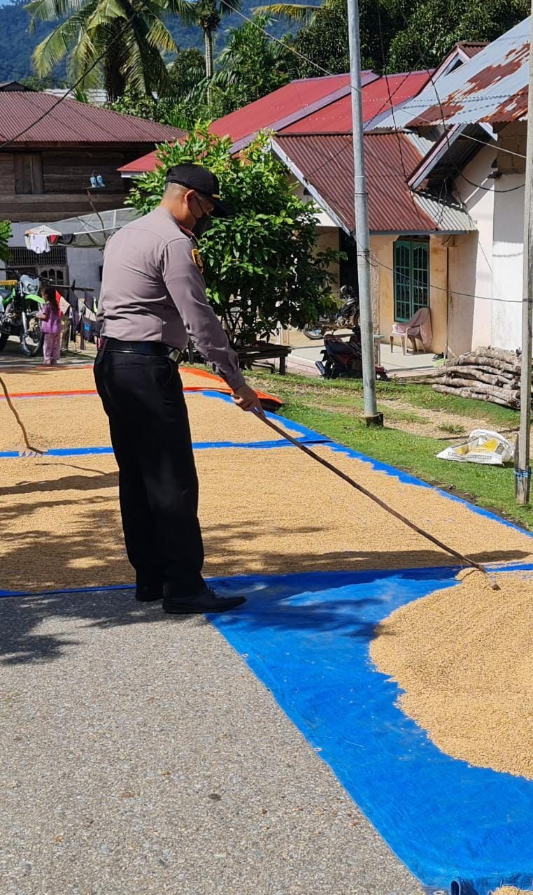 Kapolsek Ini Rela Jaga Gabah Dibawah Terik Matahari, Agar Masyarakatnya Bisa Vaksin