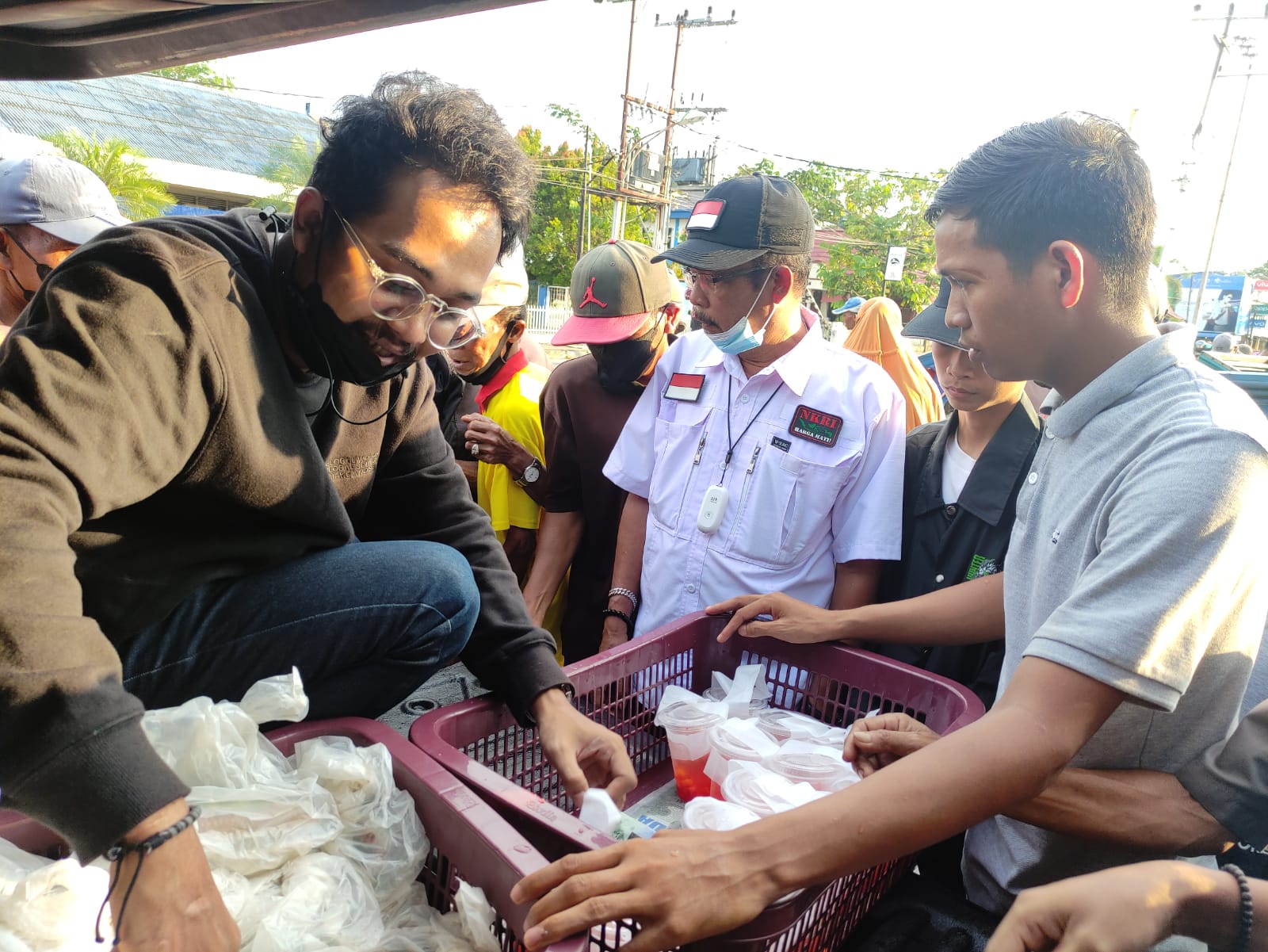 Kegiatan tersebut menggunakan mobil menyasar tukang becak yang melintas di jalan Sudirman depan Bank BNI Cabang Tembilahan, Selesa (12/4/2022) sore.