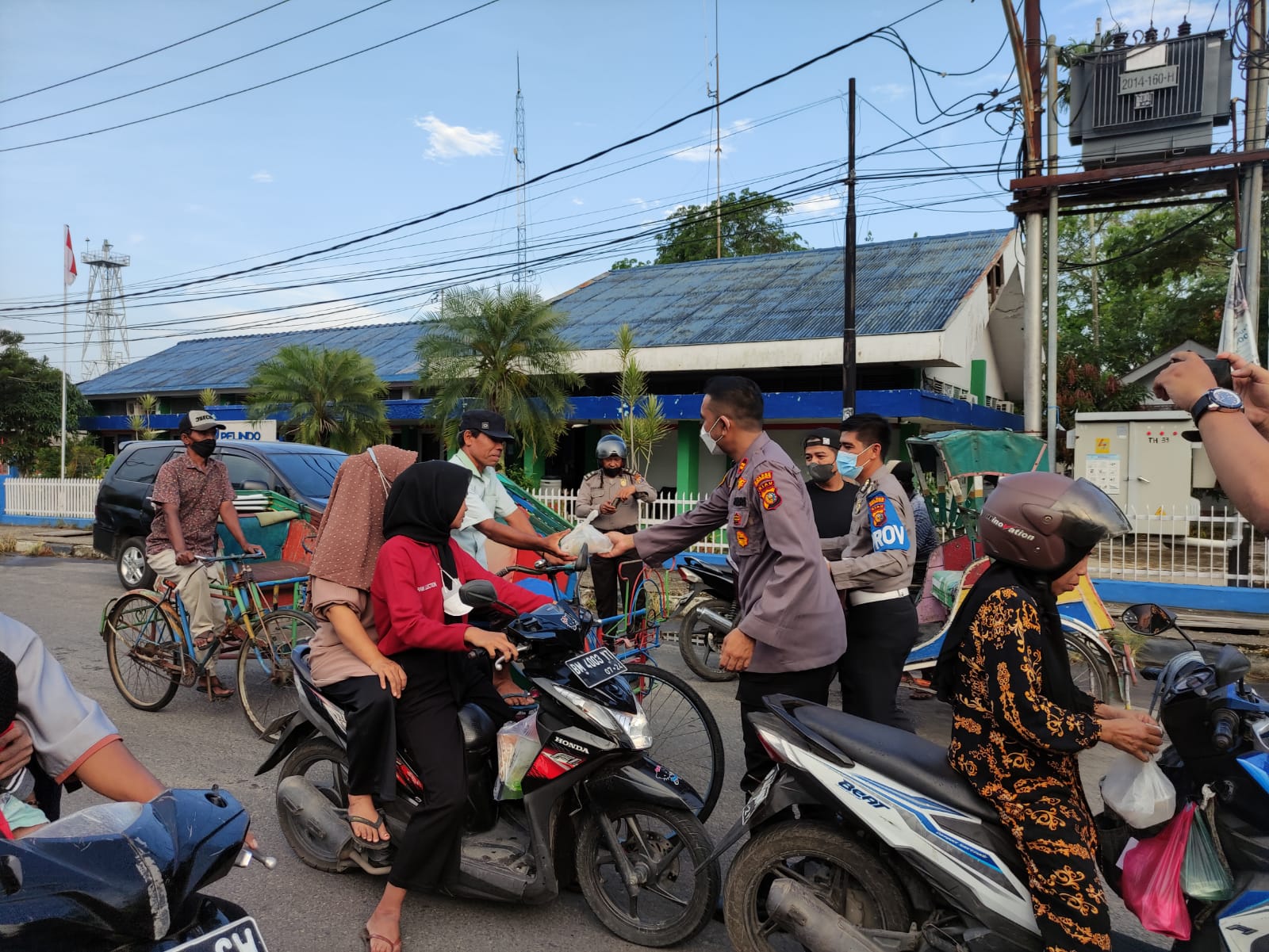 Dipusatkan di depan Mapolsek KSKP Tembilahan, sejumlah personil Polisi bekerjasama dengan jajaran PT Pelindo dan pengurus YVB membagi-bagikan ratusan takjil gratis kepada masyarakat, khususnya para pengguna jalan yang melintas di Bundaran Jalan Jendral Sudirman Tembilahan.