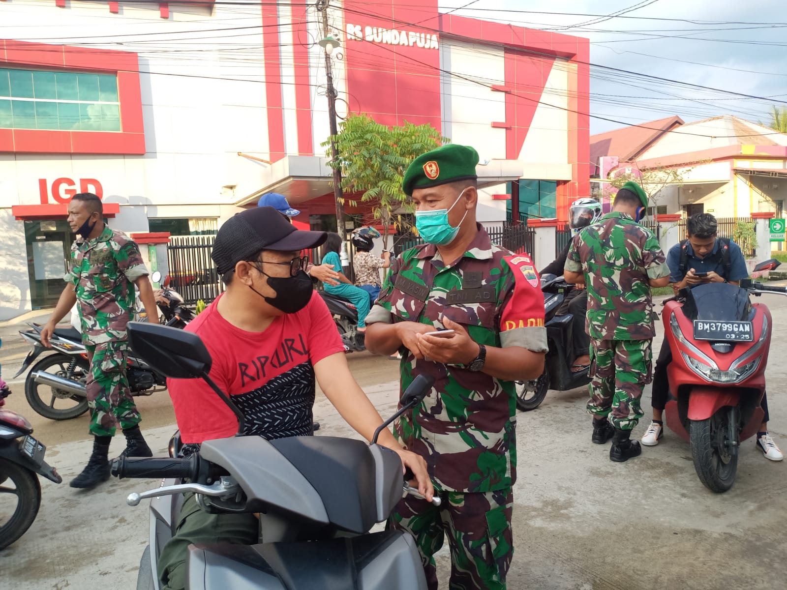 KILASRIAU.com - Tidak pernah mengenal menyerah Serbuan Vaksinasi terus dilaksanakan Kodim 0314/Inhil menjelang berbuka puasa di bulan suci Ramadhan ini tim vaksinator dan personel Koramil 01/Tembilahan memberikan himbauan dan sosialisasi kepada pengguna jalan tentang perlu dan pentingnya masyarakat untuk di vaksin 1,2 dan Booster. (Pelengkap)