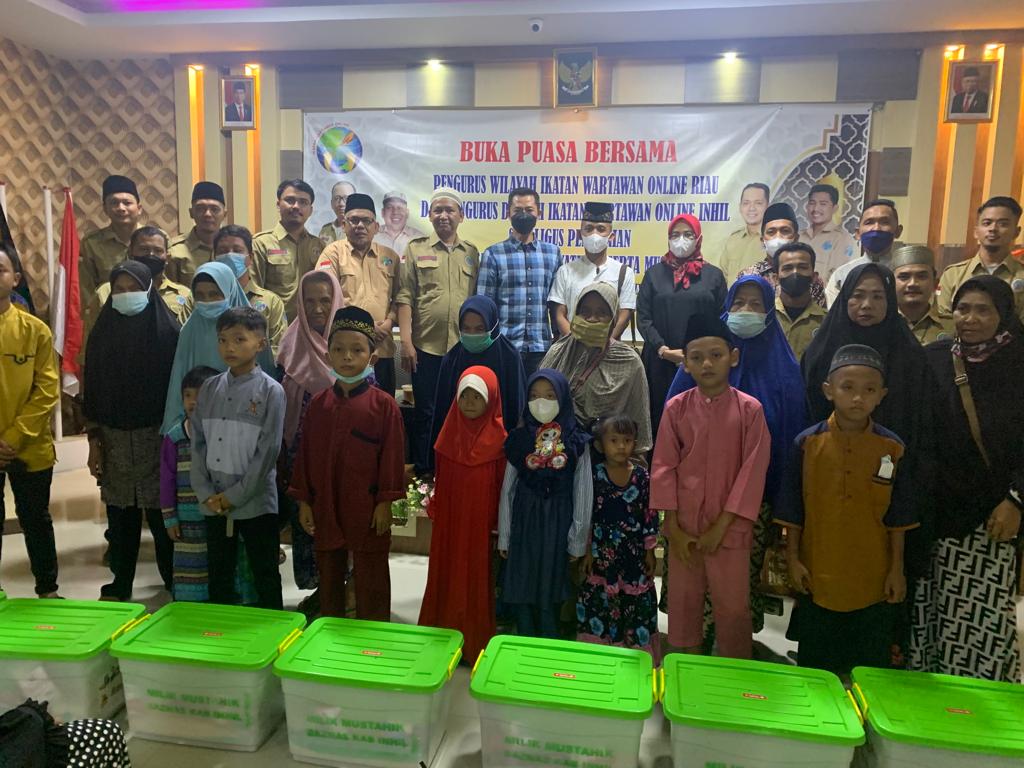 KILASRIAU.com - Pengurus Daerah Ikatan Wartawan Online (IWO) Kabupaten Indragiri Hilir (Inhil) menggelar Buka Puasa Bersama. Kegiatan itu dirangkai dengan pemberian santunan berupa 150 paket sembako bagi anak Yatim dan Mustahik, Minggu (24/4/2022) di aula Hotel Harmoni, Tembilahan.