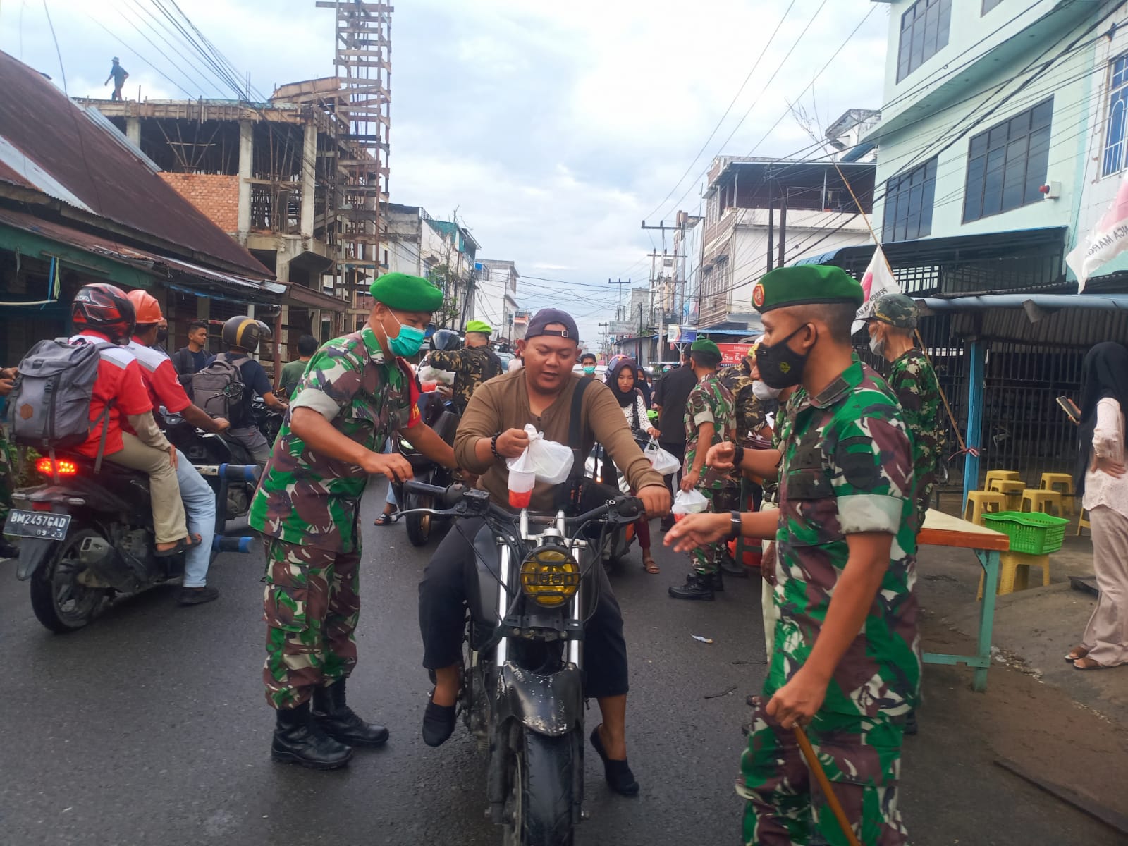 "Ya walaupun dalam keadaan macet, dikarenakan jalan yang sempit ditambah dengan kegiatan bagi-bagi takjil gratis kepada masyarakat, namun antusias masyarakat tidak pudar menunggu giliran mendapatkan Takjil yang dibagi-bagikan," ungkap Dandim.