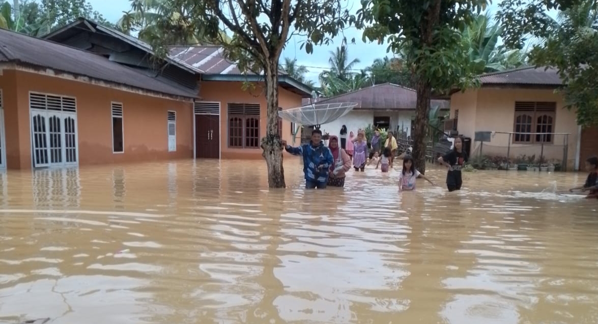 MUARA LEMBU — Akibat luapan air Sungai Lembu dan Sungai Singingi, ratusan jiwa terdampak rendaman banjir pada Senin (25/04/2022) di Kelurahan Muara Lembu Kecamatan Singingi Kabupaten Kuantan Singingi (Kuansing), Riau.