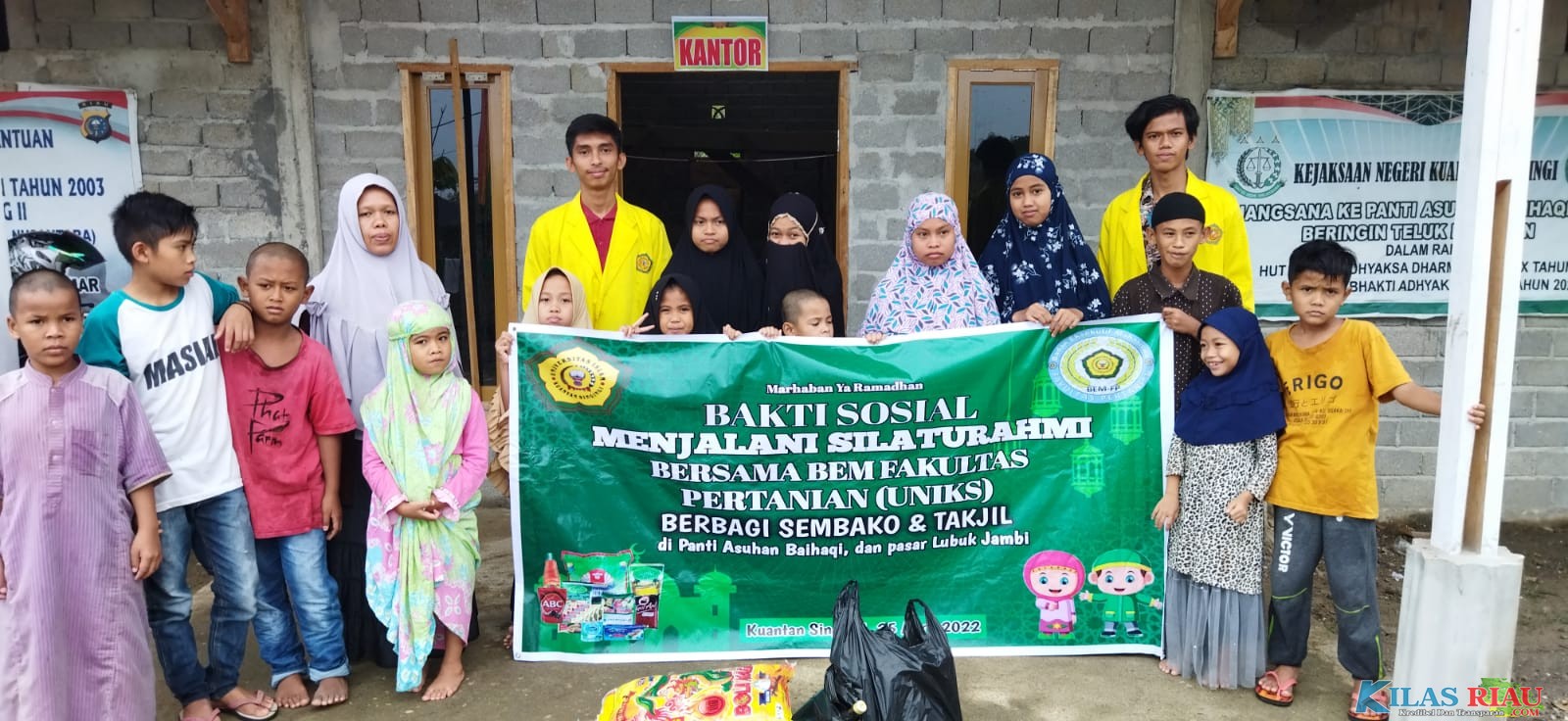 TELUK KUANTAN - Badan Eksekutif Mahasiswa Fakultas Pertanian Universitas Islam Kuantan Singingi melakukan bakti sosial berbagi sembako dan takjil pada senin(25/04/222).