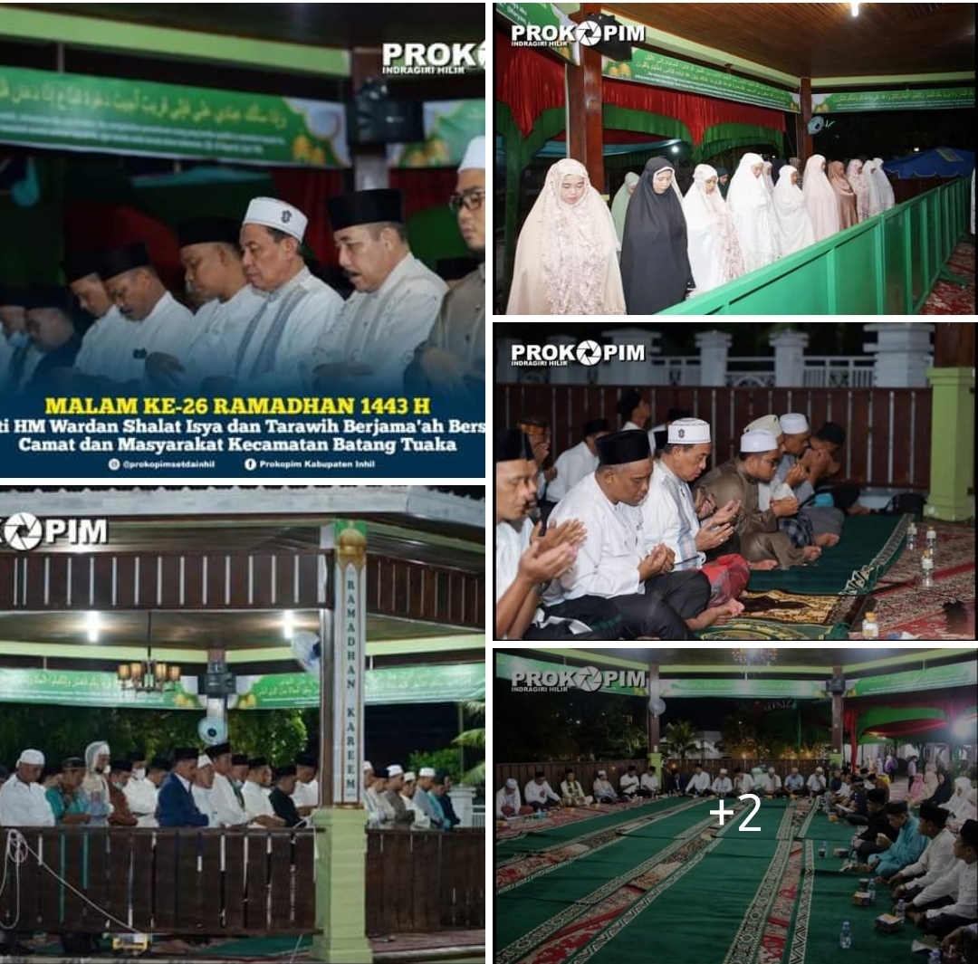KILASRIAU.COM - Di malam Ke- 26 Ramadhan 1443 H, Bupati Indragiri Hilir Drs. H.M Wardan beserta Ketua TP PKK Inhil melaksanakan sholat Is’ha dan Taraweh berjamaah bersama Masyarakat Kecamatan Batang Tuaka, di pendopo kediaman Bupati jalan Kesehatan nomor, Tembilahan (27/04/22).