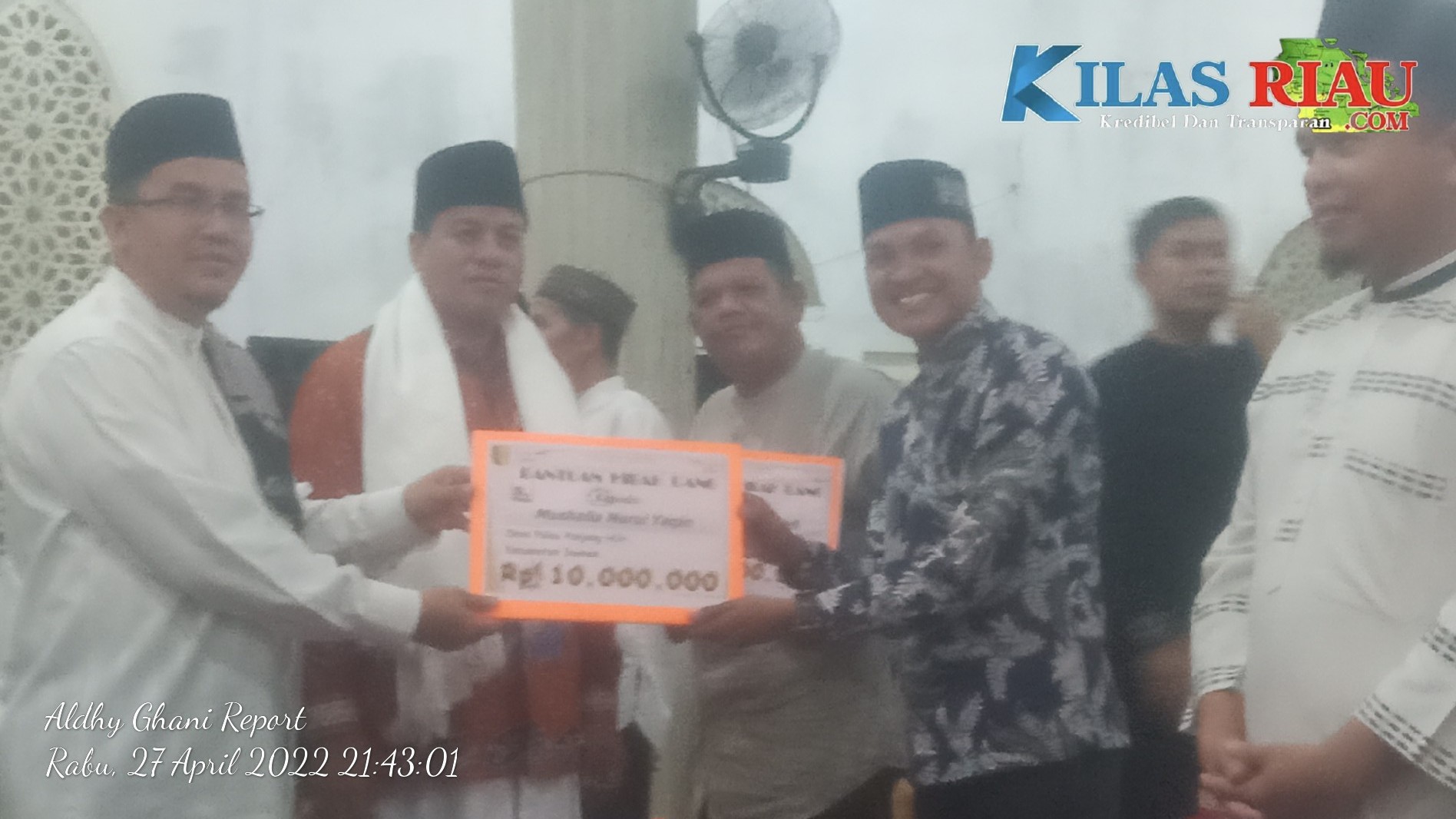 Dalam kesempatan ini, Plt Bupati H Suhardiman Amby kembali menyalurkan bantun dana hibah Pemda Kuansing untuk pembangunan tempat ibadah, bantuan jompo, fakir miskin, serta anak yatim se-Kecamatan Inuman.**
