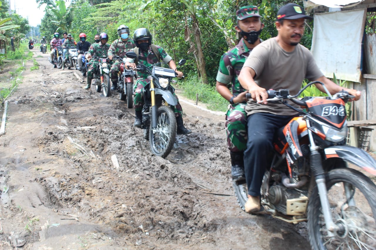 Dengan mengunakan sepeda motor Dandim 0314/Inhil Letkol Arh M Nahruddin Roshid didampingi Pasiintel Kodim 0314/Inhil Lettu Inf Delmy Armansyah, Pasiter Kodim 0314/Inhil Lettu Inf R. Ginting, Danramil 12/Btk Kapten Arh Agus Purwanto, Kades Desa Teluk Sungka Mulheriyanto, Kades Sungai Iliran, Ahmad Sukri