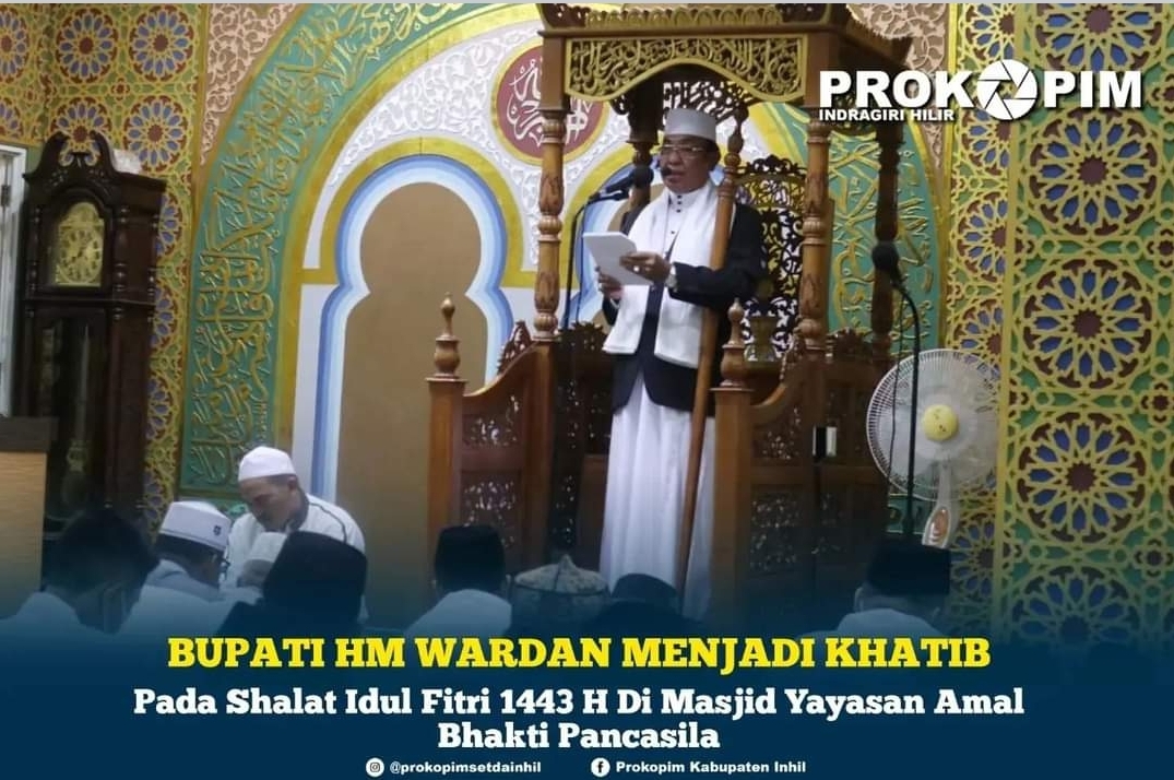 Mengawali 1 syawal 1443 H, Bupati Inhil HM Wardan Jadi Khatib di Masjid Yayasan Amal Bhakti Pancasila