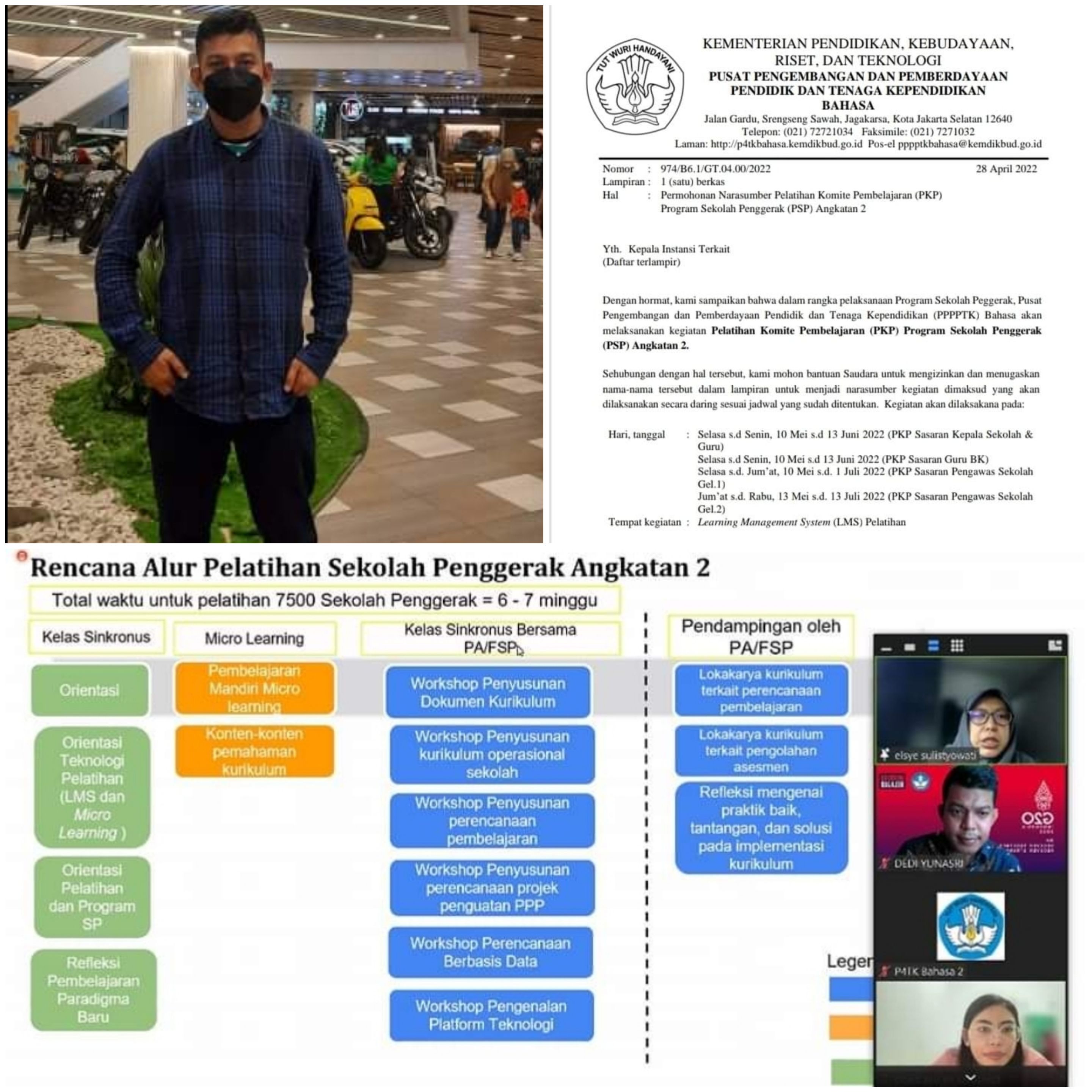 Dedi Yunasri, yang sekarang lagi menjalankan program Magister jurusan Administrasi Pendidikan menjelaskan Narasumber Pelatihan Komite Pembelajaran Sekolah Penggerak Angkatan 2" Wilayah Banten, Seluruh Provinsi yang ada di Kalimantan dan Sumatera Selatan.