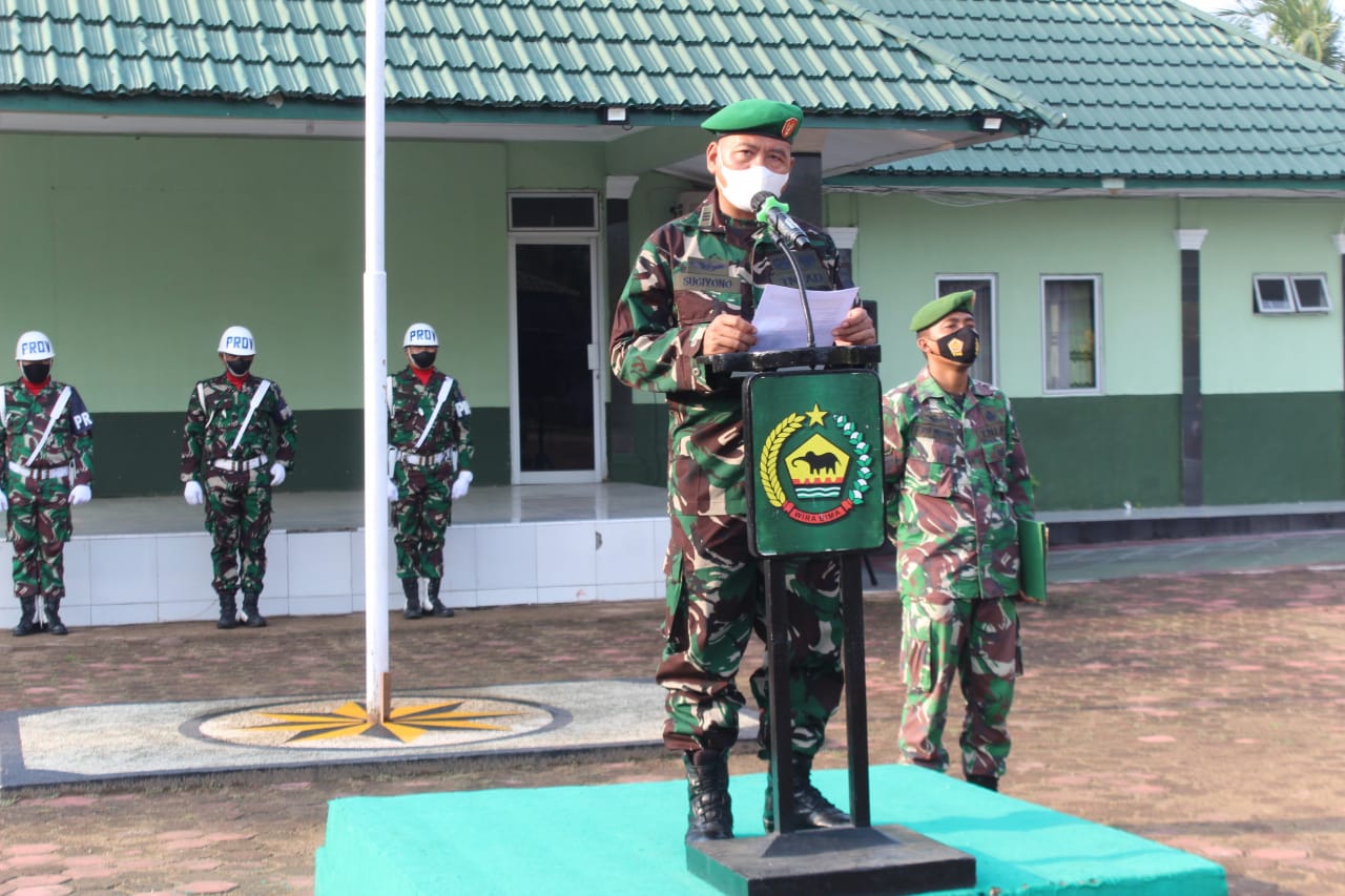 Bertindak selaku komandan upacara Bati Intel Peltu Gusmar dan inspektur upacara Pasi pers Kodim 0314 Inhil Kapten Arh Sugiyono dalam rangkaian kegiatan juga dilaksanakan pengibaran bendera merah putih oleh Provos Kodim 0314/Inhil, Pembacaan Pembukaan UUD 1945 dan Doa.