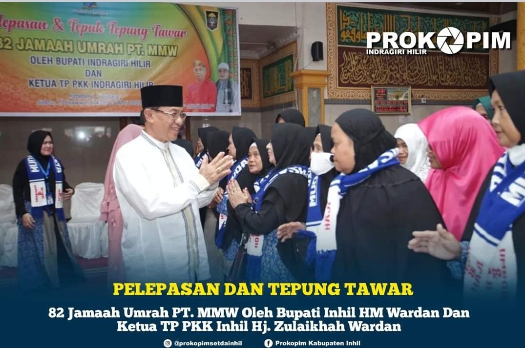 KILASRIAU.com - Bupati Indragiri Hilir (Inhil) Drs HM Wardan MP menghadiri Pelepasan serta Tepung Tawar keberangkatan Jama'ah Umroh PT Mudaris Mandiri Wisata (MMW) Mesjid Al Muslimin Kotabaru Kecamatan Keritang Bupati Inhil, Sabtu (28/5/22).