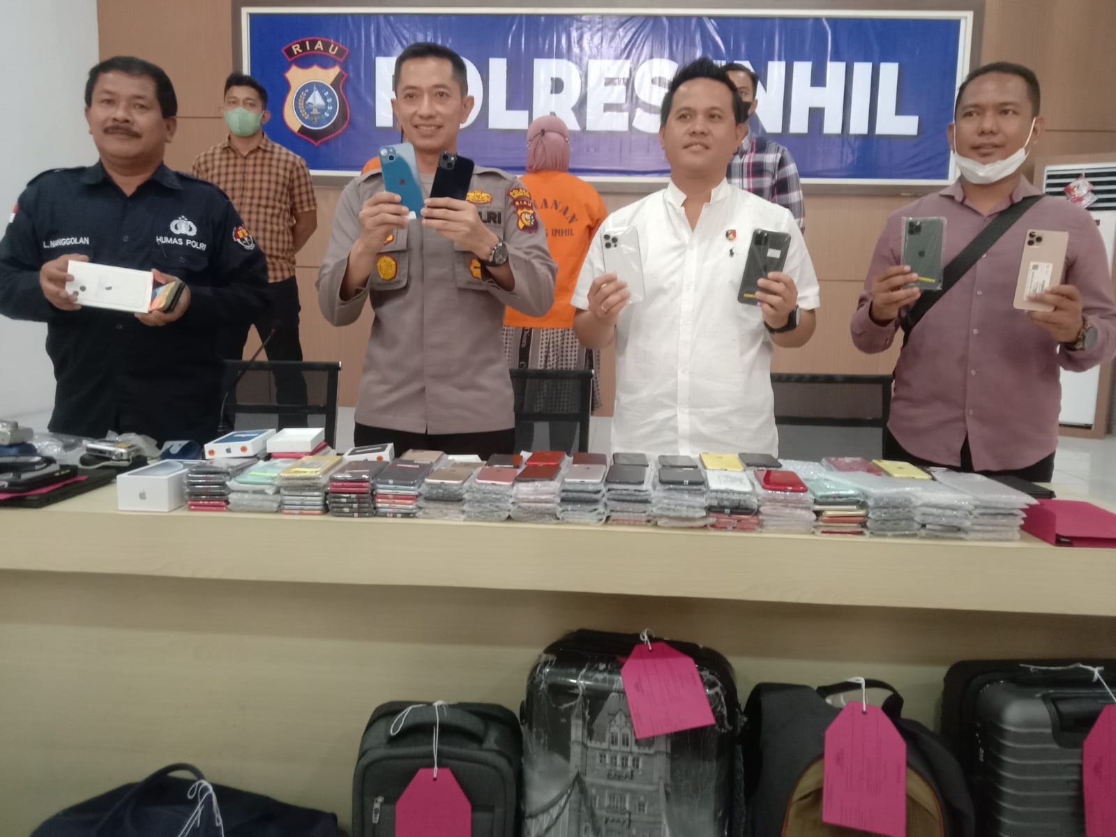 Dari hasil pemeriksaan oleh Satuan Reskrim Polres Inhil berhasil mengamankan 243 unit Handphone dengan berbagai merek, 5 unit kamera, 1 Lektop, 2 tas koper, 2 tas ransel dan 1 tas jenjeng.