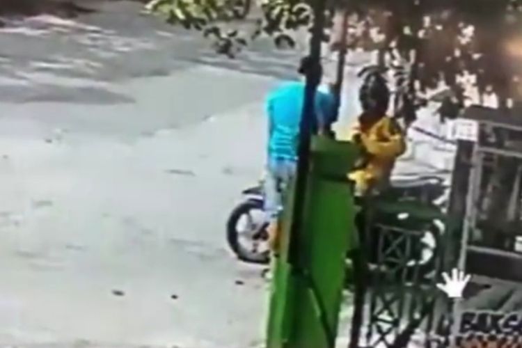 Dalam rekaman CCTV itu, tampak pria mengenakan baju kaos biru sedang menelepon.