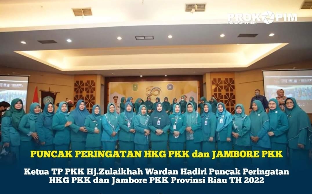 KILASRIAU.com - Ketua Tim Penggerak (TP) PKK Kabupaten Indragiri Hilir (Inhil), Hj Zulaikhah Wardan S.Sos ME menghadiri Puncak Peringatan Hari Kesatuan Gerak (HKG) Pemberdayaan dan Kesejahteraan Keluarga (PKK) ke-50 dan Jambore kader PKK tingkat Provinsi Riau tahun 2022, bertempat di Aula Gedung Wanita Jln. Diponegoro no.36 Pekanbaru, kamis (02/06/2022).