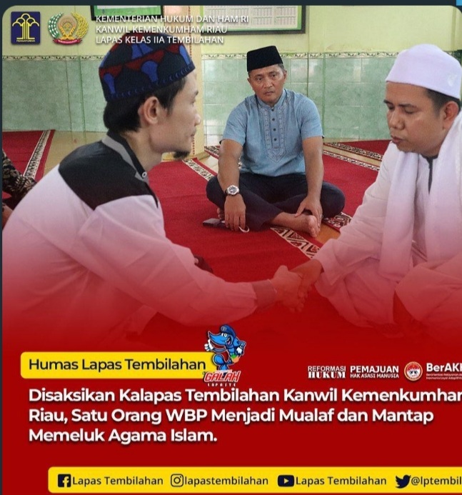 https://lapastembilahan.kemenkumham.go.id/berita-utama/disaksikan-kalapas-tembilahan-kanwil-kemenkumham-riau-satu-orang-wbp-menjadi-mualaf-dan-mantap-memeluk-agama-islam**