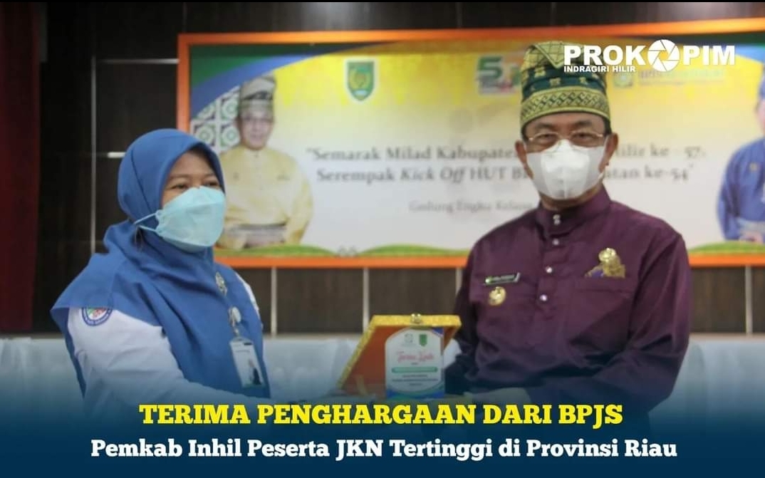 KILASRIAU.com - Penghargaan tersebut di terima langsung oleh Bupati Indragiri Hilir Drs. H.M Wardan MP, dalam acara HUT BPJS Ke- 54 bersempena Milad Inhil Ke- 57 Tahun 2022, Senin (13/06/22).