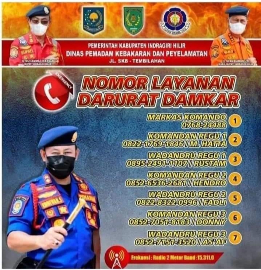 2.Hubungi Mako DPKP Inhil call center : 133 - (0768)24488. bila terjadi kebakaran dengan segera.