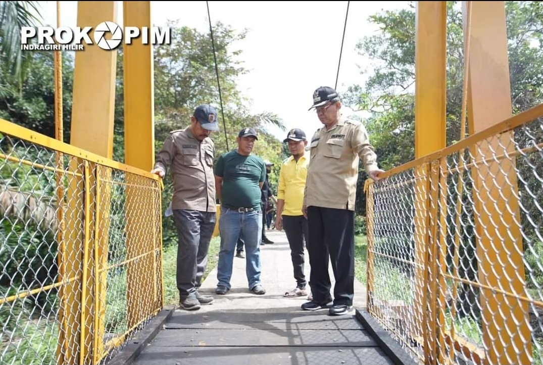 Bupati Inhil HM Wardan Tinjau Perbaikan Jemabatan Gantung Penghubung Desa