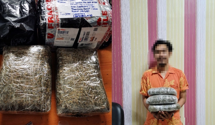 "Paket barang kiriman yang diduga berisi ganja diamankan dan diperiksa. Dari pemeriksaan, diketahui penerima barang tersebut berinisial A dan ditemukan barang bukti diduga ganja dengan berat kotor 1,6 kilogram," kata dia.