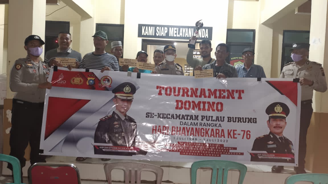 Kapolres Inhil AKBP Dian Setyawan melalui Kapolsek Pulau Burung, AKP Sabaruddin mengatakan turnamen Domino dalam rangka Hari Bhayangkara ke 76 di Kecamatan Pulau Burung.