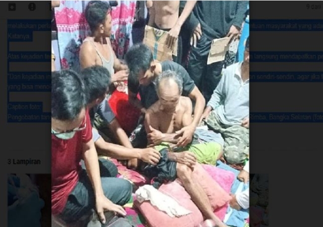 Kilasriau.com - Nasib sial menimpa Kana, warga Desa Sebagin, Kecamatan Simpang Rimba, Kabupaten Bangka Selatan. Kakek 58 tahun ini deserang buaya ganas saat menjaring ikan di perairan Tanjung Brani, Senin (27/06/2022). Akibatnya, tangan kanan Kana mengalami luka parah.