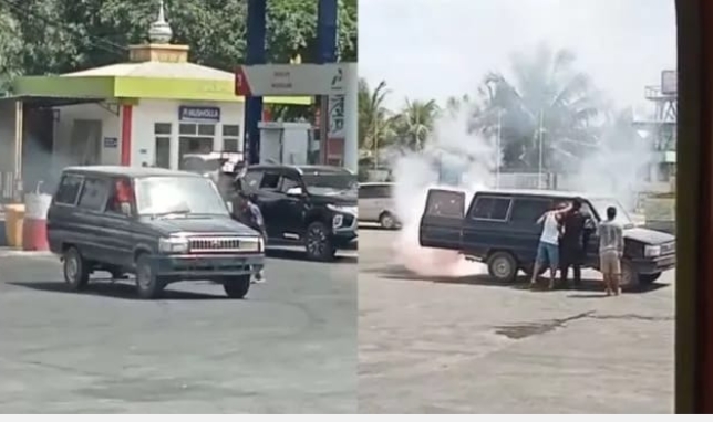 Viral! Beredar Vidio Mobil Terbakar Diduga Terjadi Di SPBU Rohul