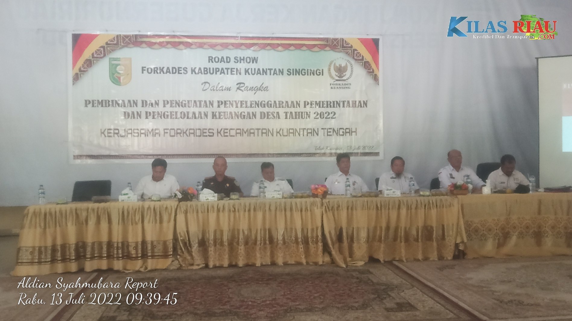 Tampak hadir dalam kegiatan ini, Plt Bupati Kuansing Drs. H Suhardiman Amby, Ak.,MM, Kepala Dinas Sosial, Pemberdayaan Masyarakat dan Desa (PMD) Erdiansyah, S.Sos., M.Si, Kajari Kuansing Nurhadi Puspandoyo, SH.,MH, Camat Kuantan Tengah Agus Iswanto, S.STP, Kapolres Kuansing AKBP Rendra Oktha Dinata, SIK, MSi, diwakili bagian tindak pidana, Aipda Agung Fauzi, Ketua Forkades se kabupaten Kuansing Solahudin, Ketua Forkades kecamatan Kuantan Tengah Bamba Rianto, Kepala desa dan sekretaris desa (Sekdes) se kecamatan Kuantan tengah, dan BPD se kecamatan Kuantan Tengah, serta Direktur Bumdes se kecamatan Kuantan Tengah.
