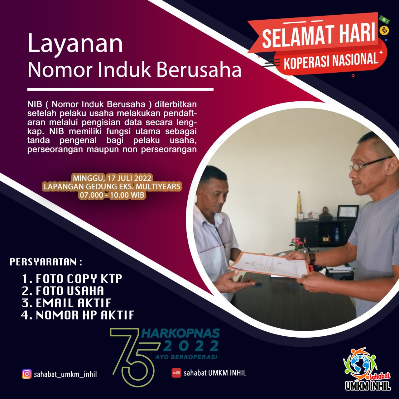 "UMKM Inhil memberikan pelayanan kepada masyarakat dan pendampingan pembinaan usaha kepada pelaku usaha untuk pembuatan NIB dengan mudah dan tidak dipungut biaya," ujar Kadis UMKM Inhil Ir H Ilyanto MT, Jum'at (15/07).