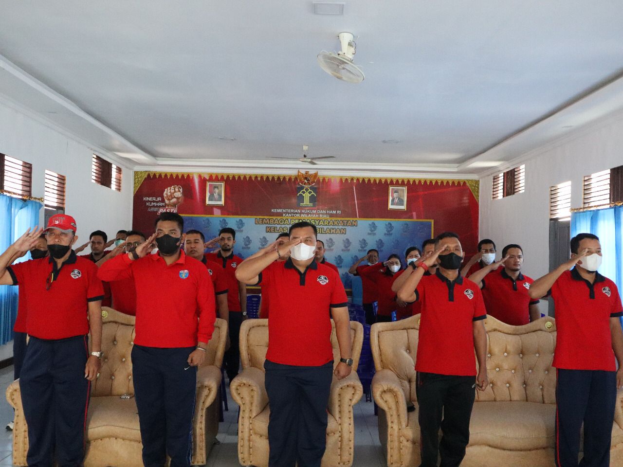 Lembaga Pemasyarakatan Kelas IIA Tembilahan mengikuti pembukaan rangkaian HDKD Ke-77 Tahun 2022 secara virtual, Jum’at (15/7). Bertempat di Aula Dr. Sahardjo Lapas Tembilahan, tampak Pelaksana Harian (plh) Kepala Lembaga Pemasyarakatan Kelas IIA Tembilahan Jon Kenedi beserta seluruh Pejabat Eselon IV (empat) dan Eselon V (lima) serta Jabatan Fungsional Tertentu (JFT) dan Jabatan Fungsional Umum (JFU) mengikuti rangkaian kegiatan upacara pembukaan HDKD ke-77 dengan tertib dan seksama.