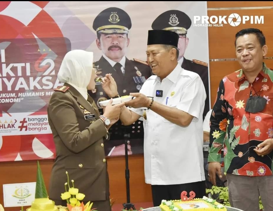 Hari Bhakti Adhyaksa Ke-62 ini ditandai dengan pemotongan nasi tumpeng oleh Kepala Kejaksaan Negeri Inhil Rini Triningsih mengangkat tema "Kepastian Hukum, Humanis menuju Pemulihan Ekonomi".