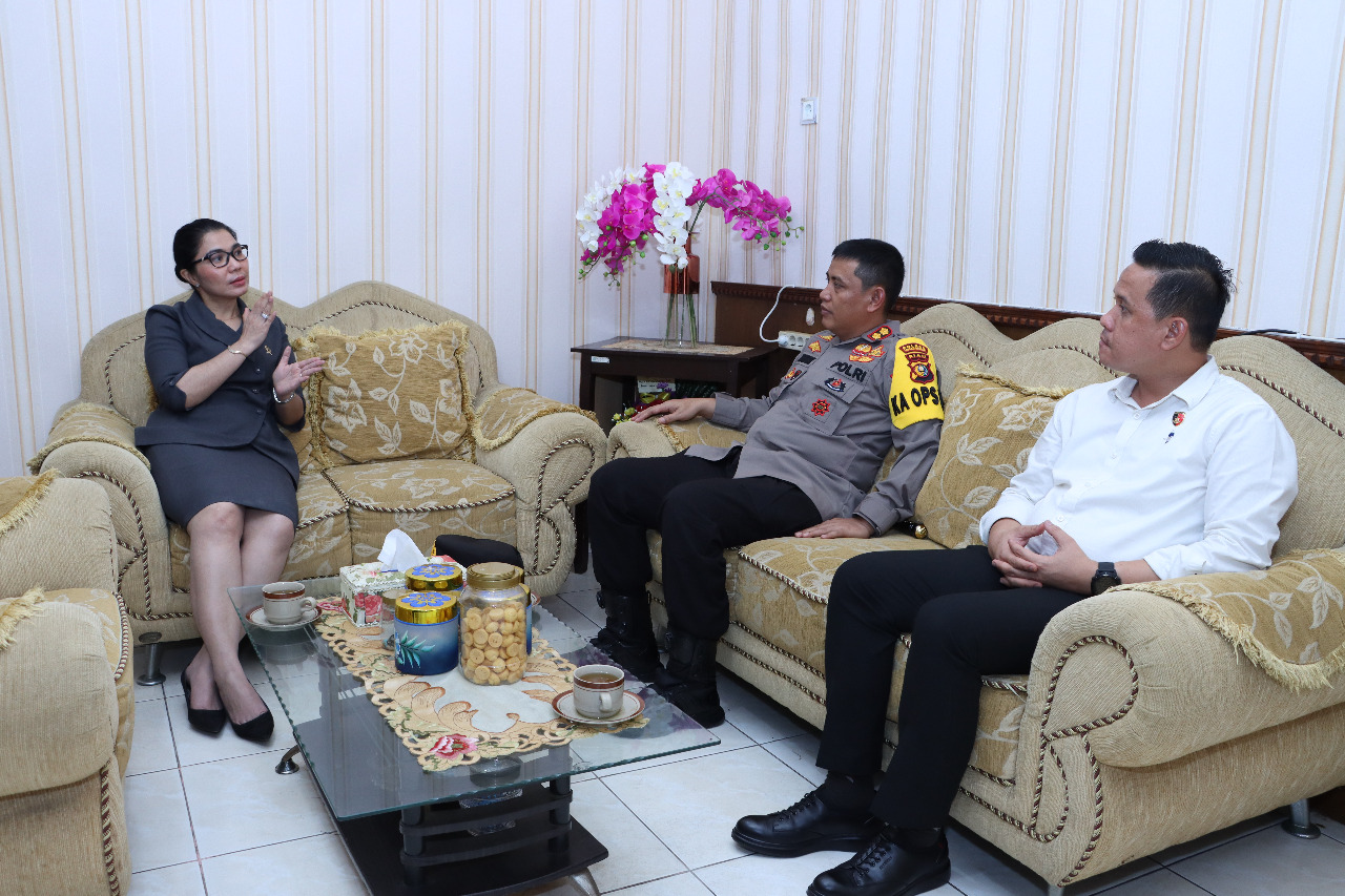 Kapolres yang didampingi Kasat Intelkam AKP Aang Kusmawan dan Kasat Reskrim AKP Amru Abdullah diterima oleh Ketua PN Tembilahan Hera Polosia Destiny SH MH, di ruang kerjanya.