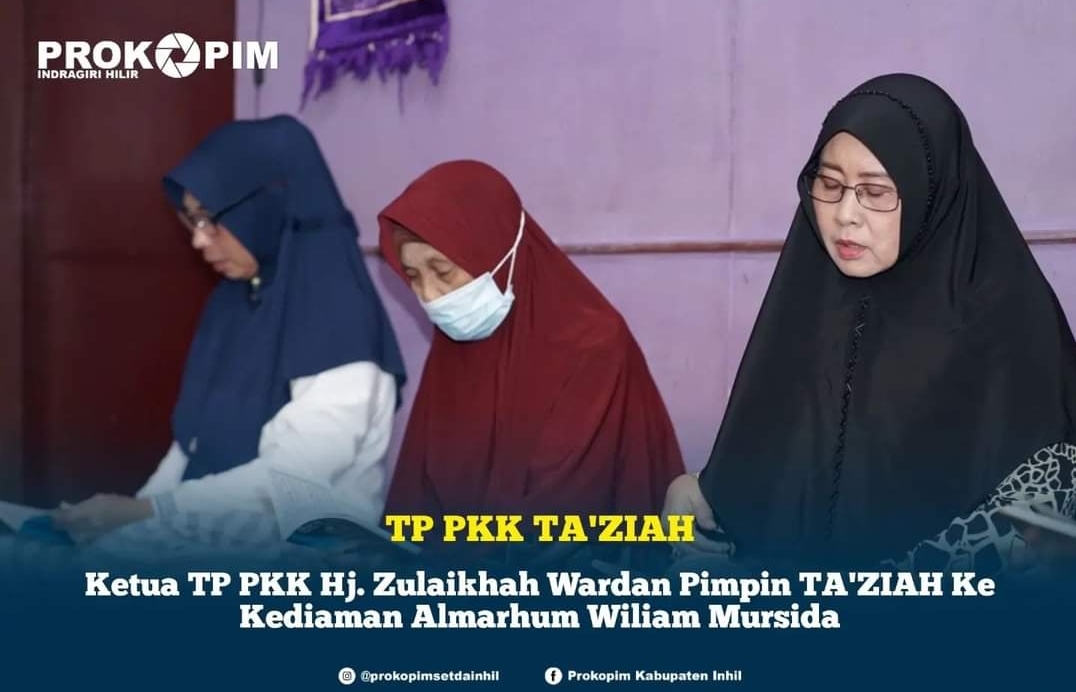 KILASRIAU.com - Ketua TP PKK Kabupaten Indragiri Hilir (Inhil) Hj. Zulaikhah Wardan S.Sos,M.E melakukan Takziah ke kediaman Almarhumah Wiliam Mursida Binti H. Adli Jl. Sungai Beringin, Kamis (28/7/22).
