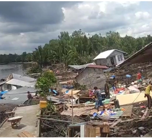 Kilasriau.com - Longsor Kembali terjadi kali ini 15 rumah di tepian sungai ikut terjun ke sungai di desa Simpang Tiga, kecamatan Enok, kabupaten Indragiri Hilir, pada Ahad (31/7/2022) pukul 11:30 WIB.