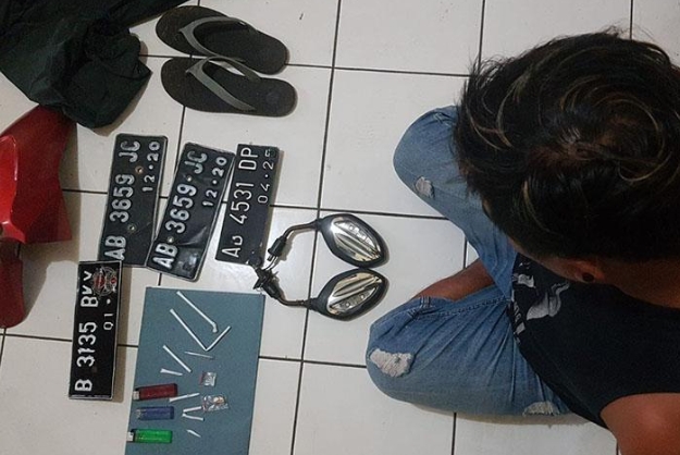 Dalam kasus ini polisi mengamankan satu plastik klip isis erbuk yang diduga sabu-sabu, korek api, dan sedotan. Sedangkan untuk kasus pencurian diamankan barang bukti plat nomor AB 3659 JC, plat nomor AB 4531 DP dan slebor motor.