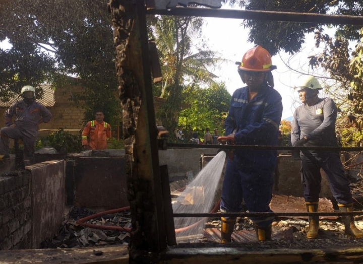 "Tiba di sana kobaran api sudah membesar. Jadi kita langsung melakukan pemadaman. Namun sebagian bangunan sudah hangus," jelasnya.