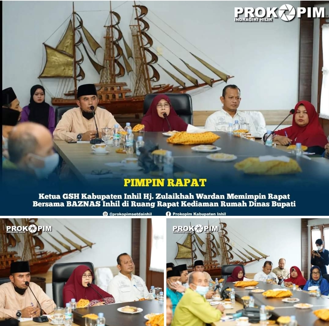 KILASRIAU.com - Hj. Zulaikhah Wardan S.Sos ME selaku Ketua Gerakan Satu Hati (GSH) Kabupaten Indragiri Hilir (Inhil) memimpin rapat bersama Badan Amil Zakat Nasional (BAZNAS) Kabupaten Inhil, di Ruang Rapat Kediaman Bupati, Jalan Kesehatan Nomor 1 Tembilahan, Rabu (3/8/22) sore.