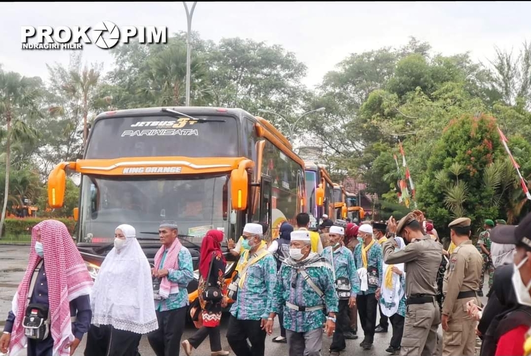 Sebanyak 301 jema'ah haji Kabupaten Inhil yang tergabung dalam kloter 7 tiba di Halaman Kantor Bupati Jl. Akasia Tembilahan. Sementara 2 jema'ah haji lainnya dipindahkan ke kloter lain untuk dipulangkan lebih awal karena sakit.